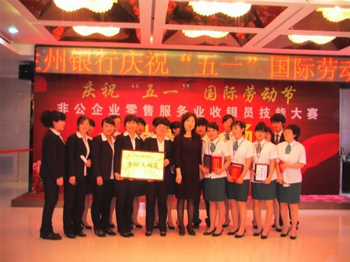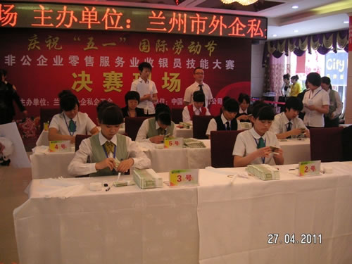 由蘭州市總工會(huì)主辦的“非公企業(yè)零售服務(wù)業(yè)收銀員技能比賽” 于2011年4月27日下午,在人民飯店落下帷幕。參加比賽的選手都是來(lái)自各公司和企業(yè)的業(yè)務(wù)尖兵,現(xiàn)場(chǎng)壓力重生,但是能和高手同臺(tái)競(jìng)技是挑戰(zhàn),也是幸運(yùn),大家都為榮譽(yù)而奮斗。比賽經(jīng)過(guò)單指單張、多指多張、機(jī)器點(diǎn)鈔、銀行卡刷卡、即問(wèn)即答、工裝展示環(huán)節(jié)近四個(gè)小時(shí)的比拼。最終國(guó)芳百貨收銀部取得了驕人的成績(jī),團(tuán)隊(duì)授予“巾幗文明崗”,參賽的12名選手在單項(xiàng)成績(jī)中,兩人榮獲得一等獎(jiǎng)、四人榮獲二等獎(jiǎng)、四人榮獲三等獎(jiǎng)、兩人榮獲優(yōu)秀獎(jiǎng)。