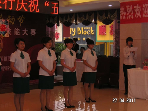 由蘭州市總工會(huì)主辦的“非公企業(yè)零售服務(wù)業(yè)收銀員技能比賽” 于2011年4月27日下午,在人民飯店落下帷幕。參加比賽的選手都是來(lái)自各公司和企業(yè)的業(yè)務(wù)尖兵,現(xiàn)場(chǎng)壓力重生,但是能和高手同臺(tái)競(jìng)技是挑戰(zhàn),也是幸運(yùn),大家都為榮譽(yù)而奮斗。比賽經(jīng)過(guò)單指單張、多指多張、機(jī)器點(diǎn)鈔、銀行卡刷卡、即問(wèn)即答、工裝展示環(huán)節(jié)近四個(gè)小時(shí)的比拼。最終國(guó)芳百貨收銀部取得了驕人的成績(jī),團(tuán)隊(duì)授予“巾幗文明崗”,參賽的12名選手在單項(xiàng)成績(jī)中,兩人榮獲得一等獎(jiǎng)、四人榮獲二等獎(jiǎng)、四人榮獲三等獎(jiǎng)、兩人榮獲優(yōu)秀獎(jiǎng)。