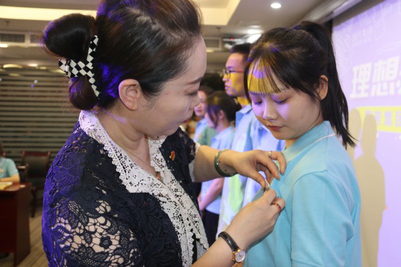 在入職儀式進(jìn)入尾聲之際,進(jìn)行授牌及贈書儀式,由國芳集團(tuán)各位領(lǐng)導(dǎo)為新一屆管理培訓(xùn)生佩戴工卡并合影留念,從此刻起,數(shù)十名管理培訓(xùn)生便正式成為了國芳集團(tuán)中的一員。